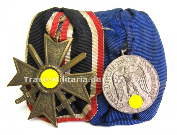 2er Ordenspange Kriegsverdienstkreuz 2. Klasse und Wehrmachtsdienstauszeichnung 4 Jahre